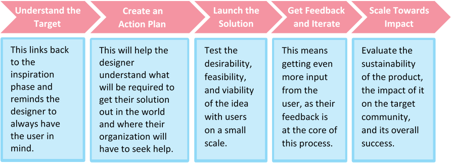 According to IDEO.org, the approach to human-centred design consists of 3 phases: Inspiration, Ideation and Implementation.